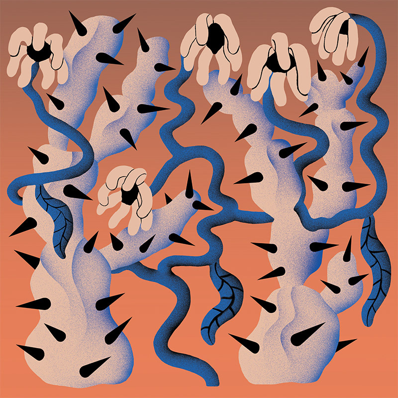 Many plants are very adaptable and can grow even in surprising places. In my illustration, the flowers have adjusted to poor conditions and managed to grow avoiding the thorns of the dominant cacti. However, the energy consumed by avoiding has eventually exhausted the flowers.