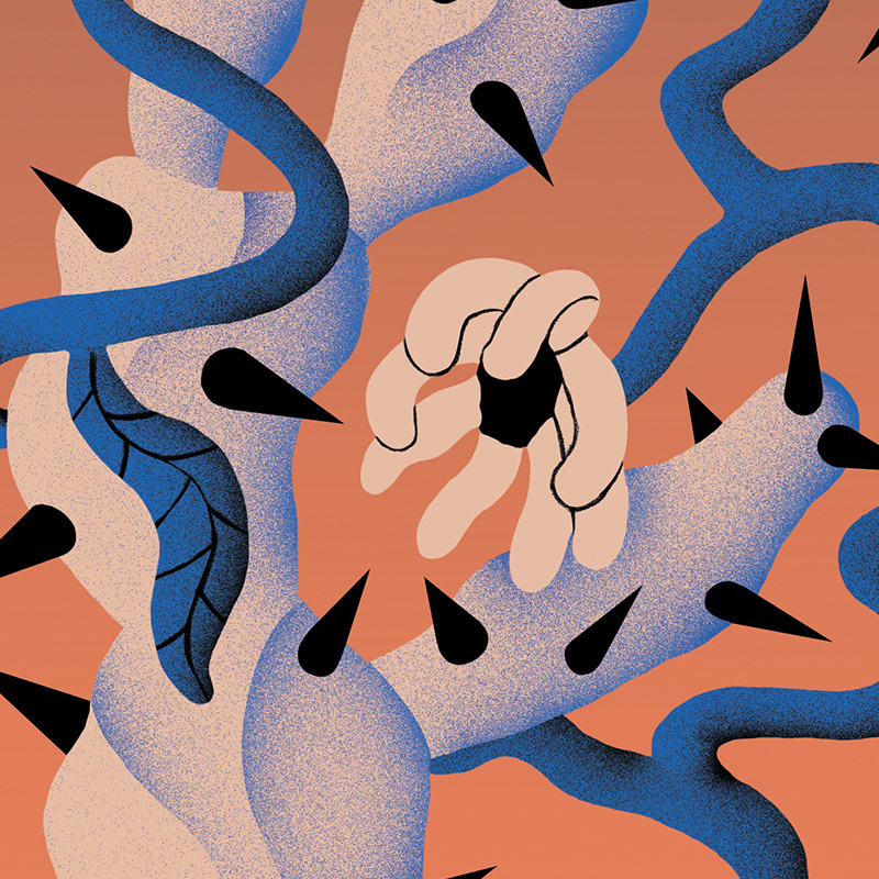 A symbolic illustration about student wellbeing for AYY's (Aalto University Student Union) year book.